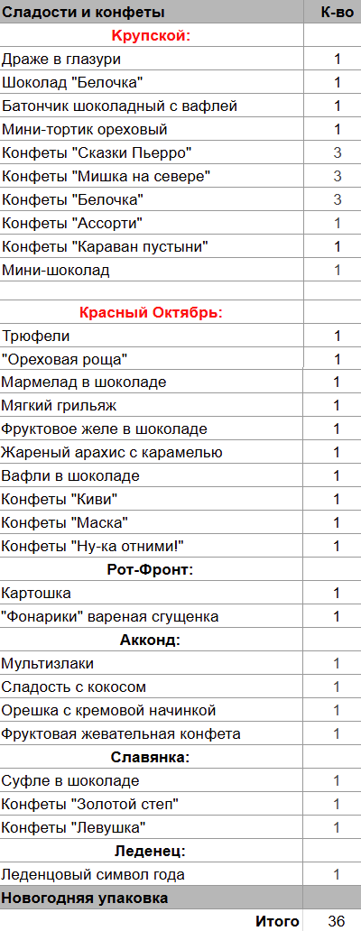 Кол-во сладостей: 36 шт.