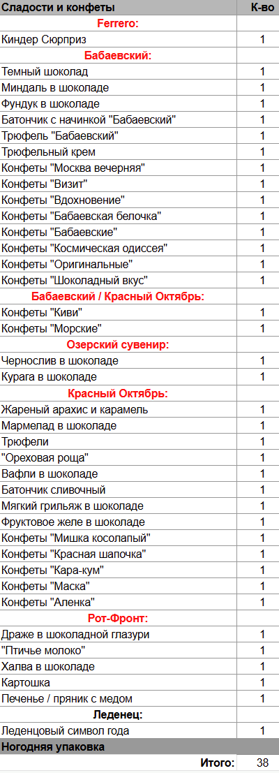 Кол-во сладостей: 38 шт.