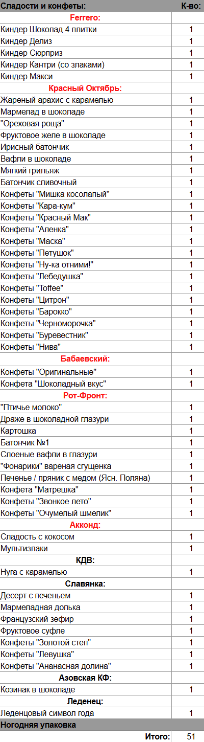 Интернет-магазин сладких новогодних подарков работает от производителя напрямую, за счет чего мы убираем посредников и снижаем цены на детские новогодние подарки. Кроме того, наша логистика позволяет доставить заказ практически в любой город за наш счет. Все цены на сладкие подарки актуальны
