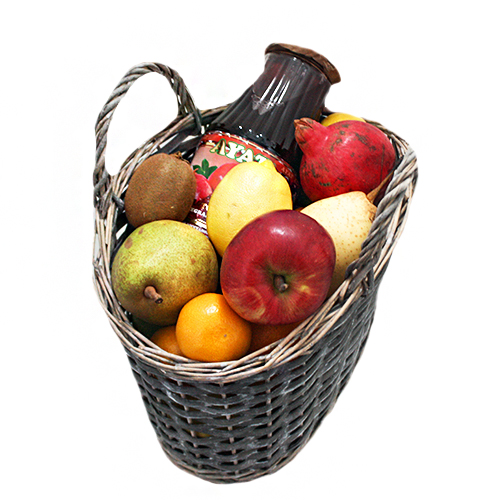 Состав: Корзина, фрукты 3-3.5 кг, гранатовый сок -1 шт