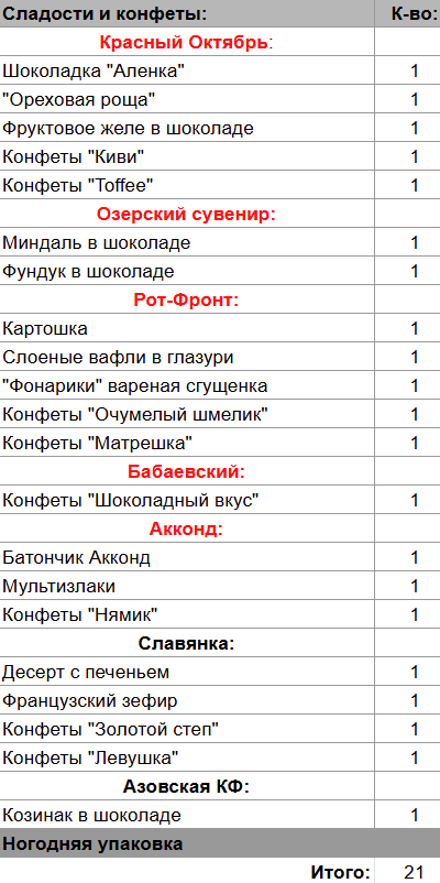 Интернет-магазин сладких новогодних подарков работает от производителя напрямую, за счет чего мы убираем посредников и снижаем цены на детские новогодние подарки. Кроме того, наша логистика позволяет доставить заказ практически в любой город за наш счет. Все цены на сладкие подарки актуальны